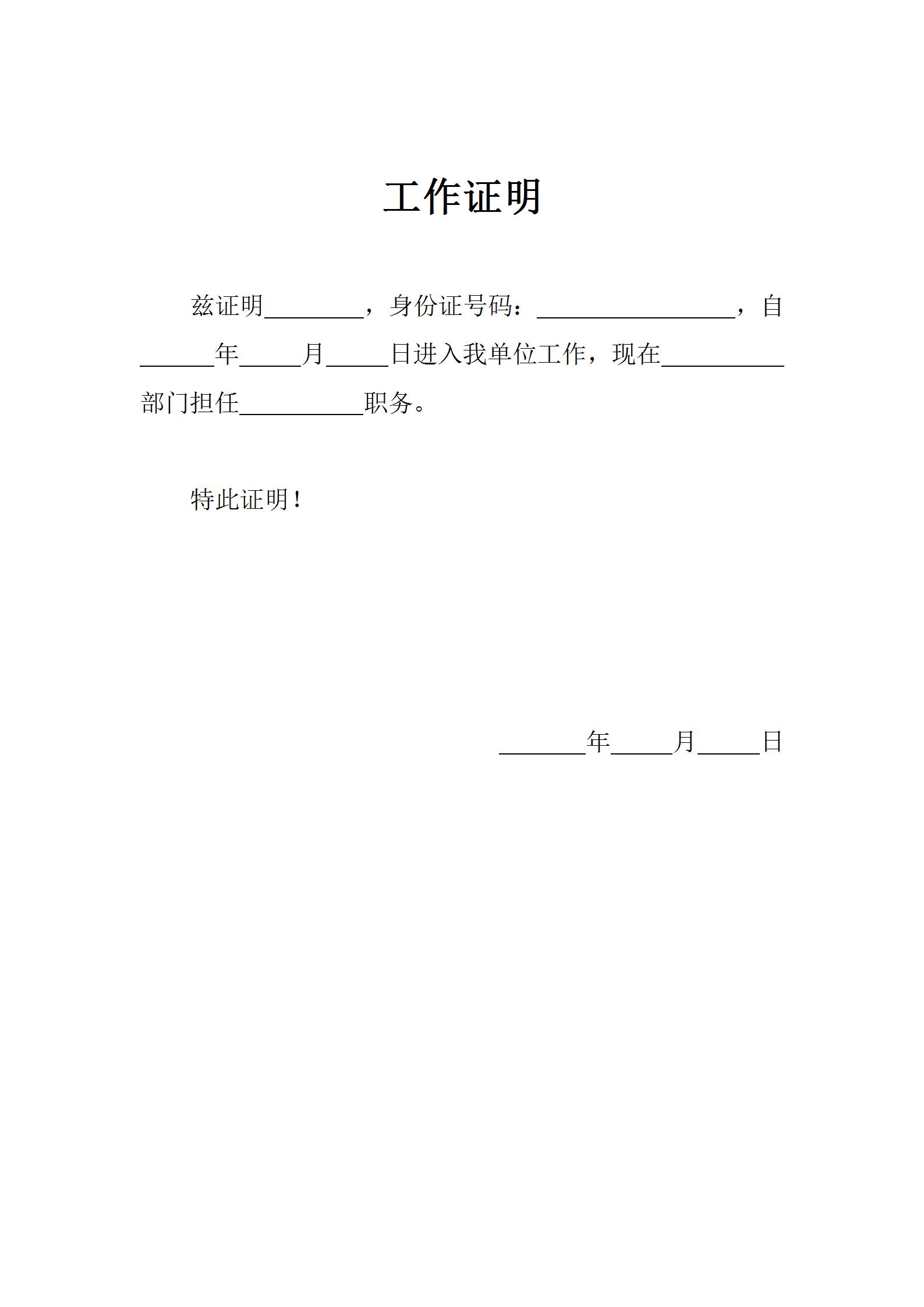 身份证号码: ___________________姓名: _________ 任职我公司______部______岗位,至_____年____月____日,因个人原因离职,经公司慎重考虑准予离职,已办理完毕离职手续。